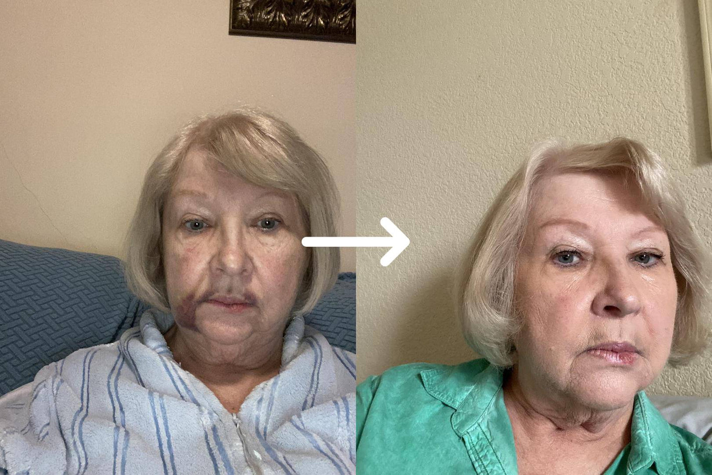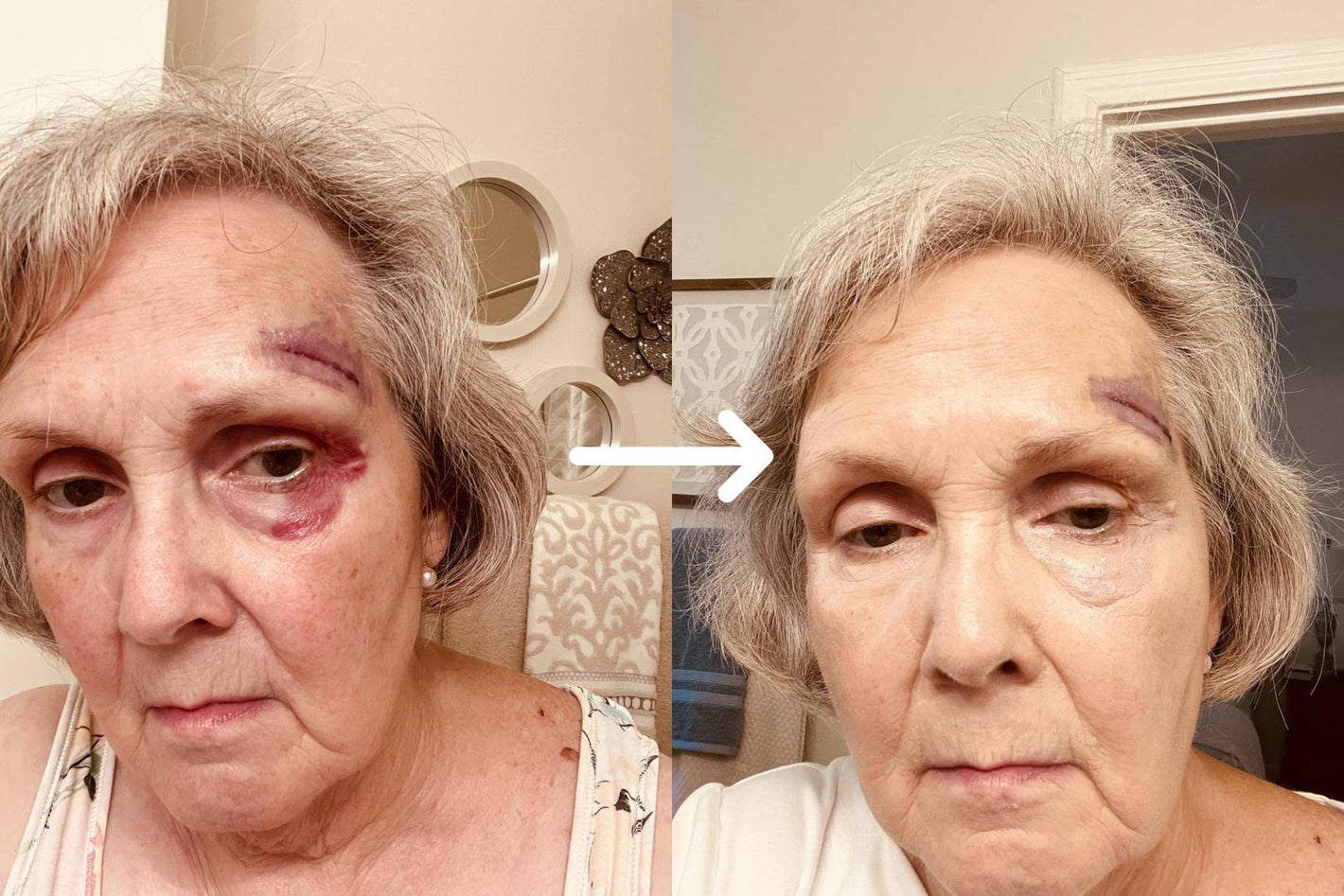 I’ve been using Perbelle for 2 years and love it! Won’t use anything else on my face. The before and after pictures show the bad bruising from an injury, and the almost complete cover using PerBelle everywhere except the deep cut was.